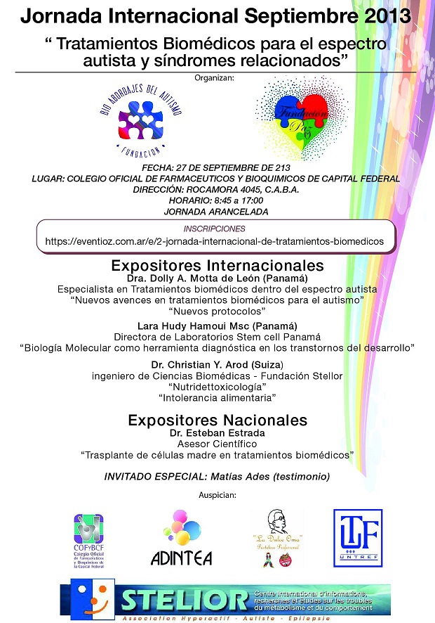 “2DA. JORNADA INTERNACIONAL SOBRE TRATAMIENTOS BIOMEDICOS PARA EL ESPECTRO AUTISTA Y SINDROMES RELACIONADOS”.Realizado en Septiembre en el Colegio Oficial de Farmaceuticos y Bioquímicos de Capital Federal