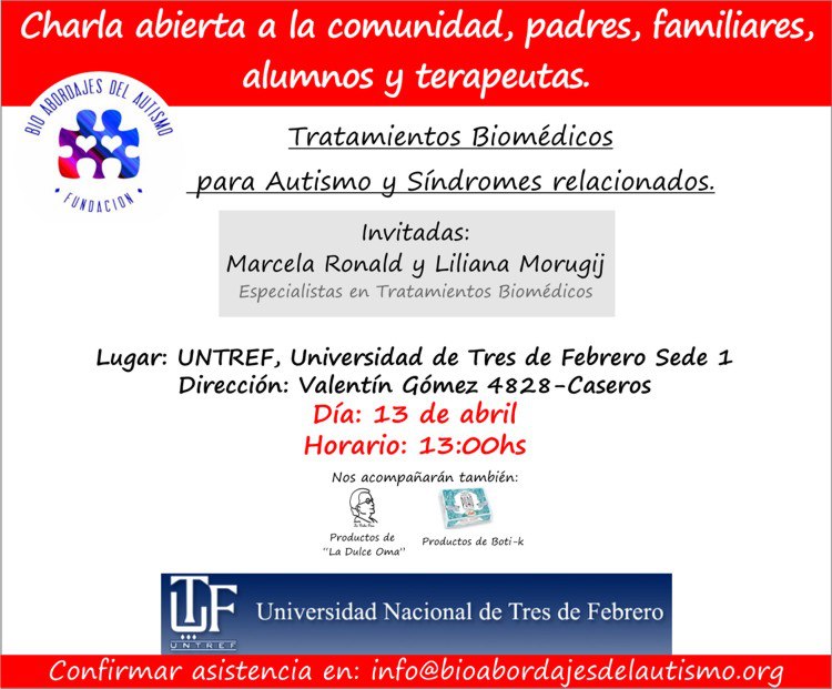 “CHARLAS ABIERTAS A LA COMUNIDAD, PADRES Y TERAPEUTAS SOBRE TRATAMIENTOS BIOMÉDICOS