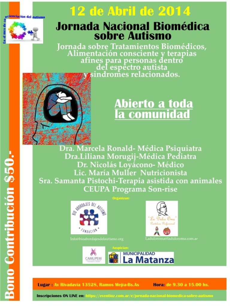 - “JORNADA BIOMEDICA NACIONAL PARA PERSONAS DENTRO DEL ESPECTRO AUTISTA”.Realizado el 12 de Abril en el Municipio de La Matanza