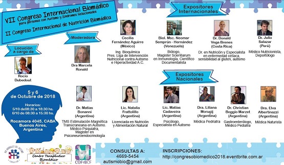 - “VII CONGRESO INTERNACIONAL BIOMEDICO PARA PERSONAS CON AUTISMO Y SINDROMES RELACIOANADOS” Y “2DO. CONGRESO INTERNACIONAL DE NUTRICIÓN BIOMEDICA”