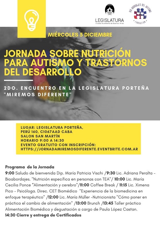 «JORNADASOBRE NUTRICIÓN PARA AUTISMO Y TRASTORNOS DEL DESARROLO» – 2DO ENCUENTRO EN LA LEGISLATURA PORTENA «MIREMOS DIFERENTE» Realizado el 5 de Diciembre en la Legislatura Porteña, Buenos Aires