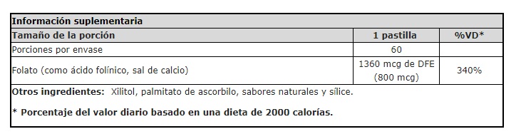 - Folato sin metilo en una pastilla sabrosa y bien digerible