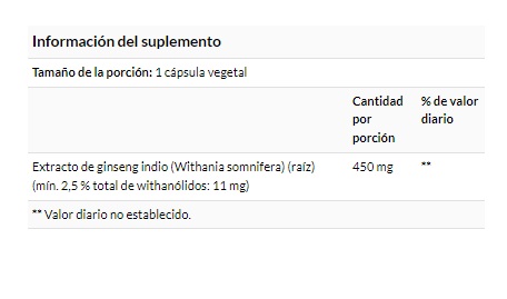 El ginseng indio (Withania somnifera) es una hierba que se usa ampliamente en el ayurveda, el sistema herbal tradicional en la India. El ginseng indio se utiliza como tónico general y “adaptógeno”, lo cual ayuda al cuerpo a adaptarse al estrés temporal normal. Además, datos preliminares indican que el ginseng indio refuerza la salud del sistema inmunitario.