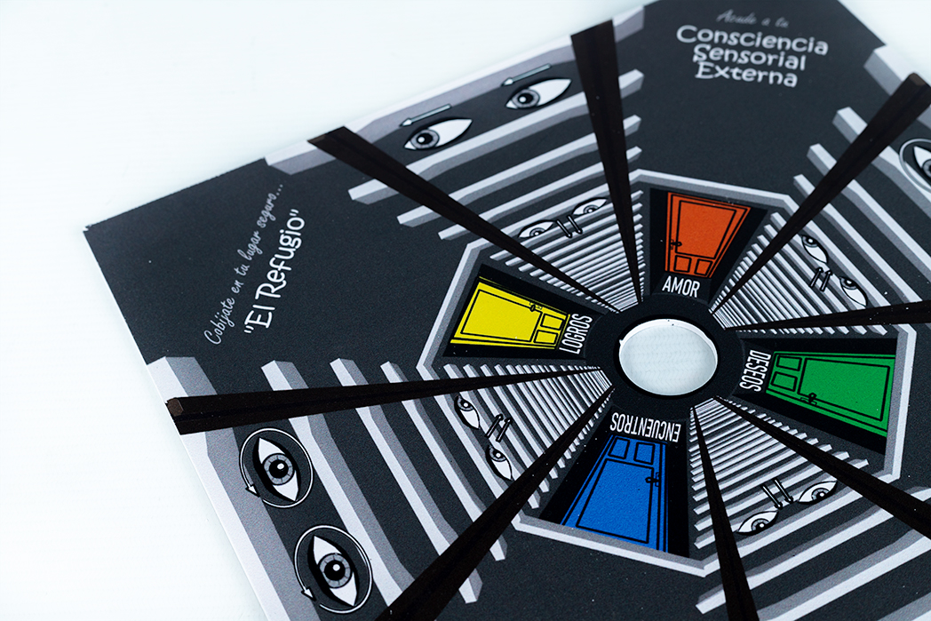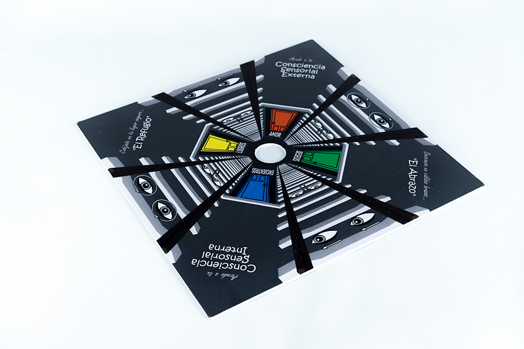 Formado por un mapa que propone un recorrido ascendente y/o descendente por las escaleras, ejercitando movimientos oculares habituales en las técnicas de relajacion asi como conexion con emociones e introspeccion.