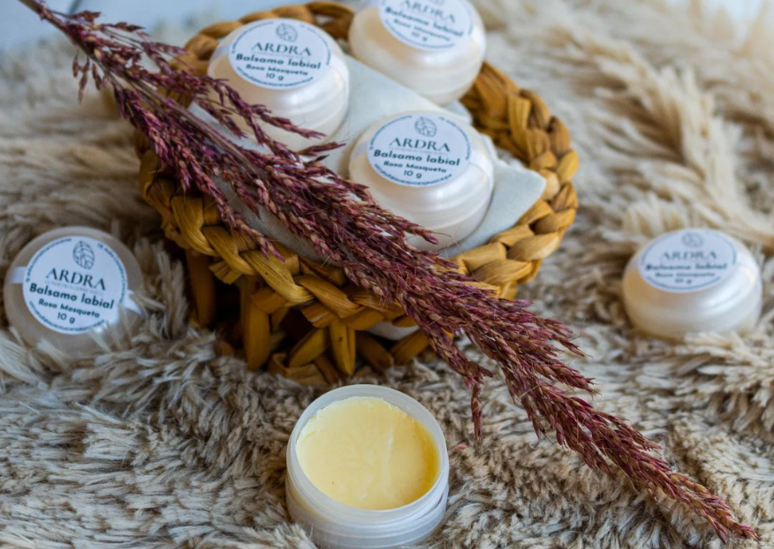 Con manteca de cacao, manteca de karité y aceite de rosa mosqueta. Hidrata y nutre los labios,