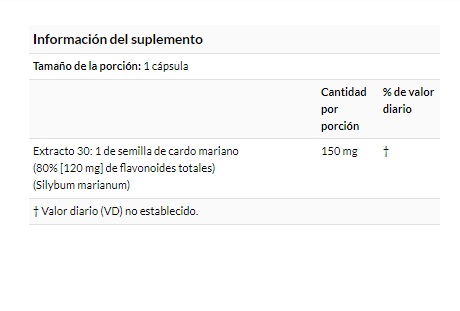 El extracto 30:1 de cardo mariano (Silybum marianum) de Jarrow Formulas® está estandarizado para que contenga un 80 % de flavonoides totales de semillas de cardo mariano, incluidas isosilibininas, silibininas, silicristinas y silidianinas. Este grupo de flavonoides, conocido colectivamente como silimarina, refuerza la función hepática al promover los niveles de glutatión.