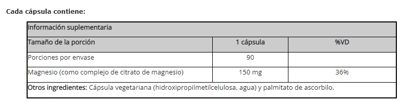 El magnesio ayuda a convertir carbohidratos, proteínas y grasas en energía, actúa como catalizador en miles de procesos enzimáticos, regula y mantiene el tono vascular y es fundamental para la correcta formación ósea. Regula el metabolismo del calcio y el potasio, facilita la constricción y relajación muscular, y contribuye a la transmisión y conducción nerviosa. Esta fórmula utiliza citrato de magnesio, una forma de magnesio fácilmente soluble. Algunas investigaciones indican que el citrato de magnesio se absorbe mejor en comparación con otras formas de magnesio menos solubles.