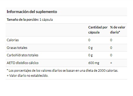 Cada cápsula contiene 600 mg de AETD disódico cálcico.