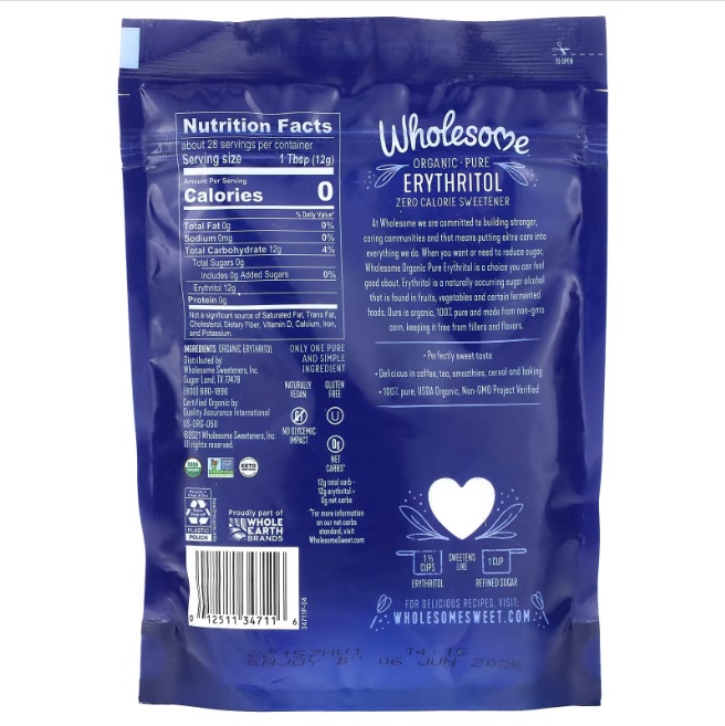El eritritol orgánico es un delicioso endulzante sin calorías que sabe a azúcar con un dulzor suave y puro, sin amargor ni regusto. El eritritol está hecho de maíz orgánico sin OGM y no contiene rellenos, sabores ni carbohidratos ocultos, lo que lo convierte en el endulzante perfecto sin calorías. Es perfecto para dietas bajas en carbohidratos, ya que el eritritol no tiene un impacto glucémico sobre la glucemia y los carbohidratos no se procesan como el azúcar en el cuerpo. ¡Pruébela en sus bebidas y productos horneados!