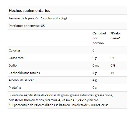 - Cero calorías | Cero gramos de carbohidratos netos | Índice glucémico cero