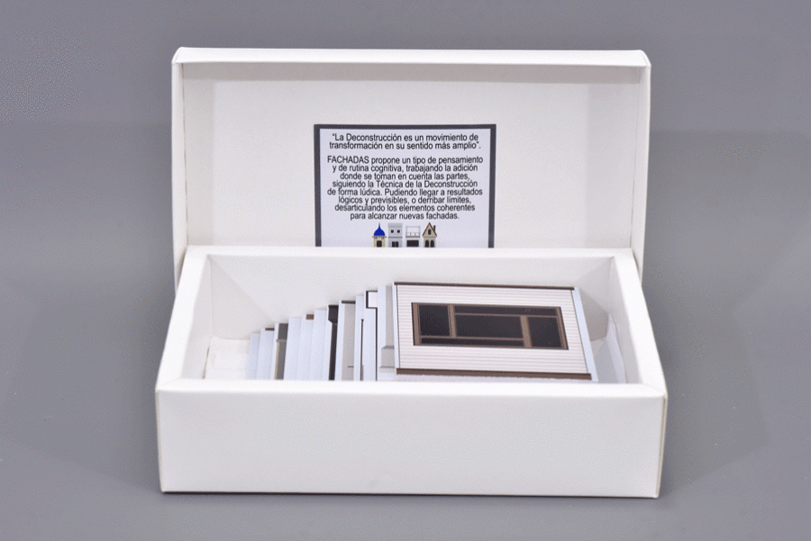 Fachadas propone un tipo de pensamiento y de rutina cognitiva, trabajando la adición donde se toman en cuenta las partes. Pudiendo llegar a resultados lógicos y previsibles, o derribar limites, desarticulando los elementos coherentes para alcanzar nuevas fachadas.