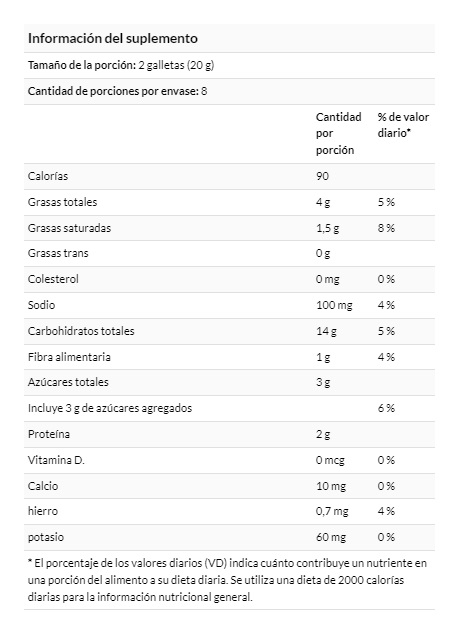 ** Nuestras galletas contienen más de un 35% menos de azúcar que la galleta dulce comparable promedio. Nuestras galletas contienen 7 g por porción de 40 g. Una galleta dulce comparable promedio contiene 11 g por porción de 40 g.