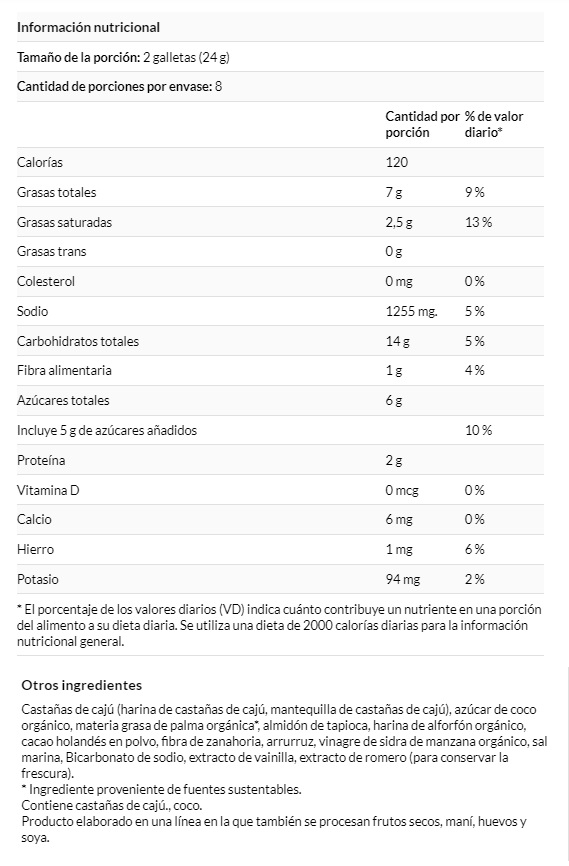 Usamos frutos secos en las galletas y el relleno. Las castañas de cajú aportan grasas, vitaminas y minerales beneficiosos, como el zinc, el magnesio y la vitamina B6.