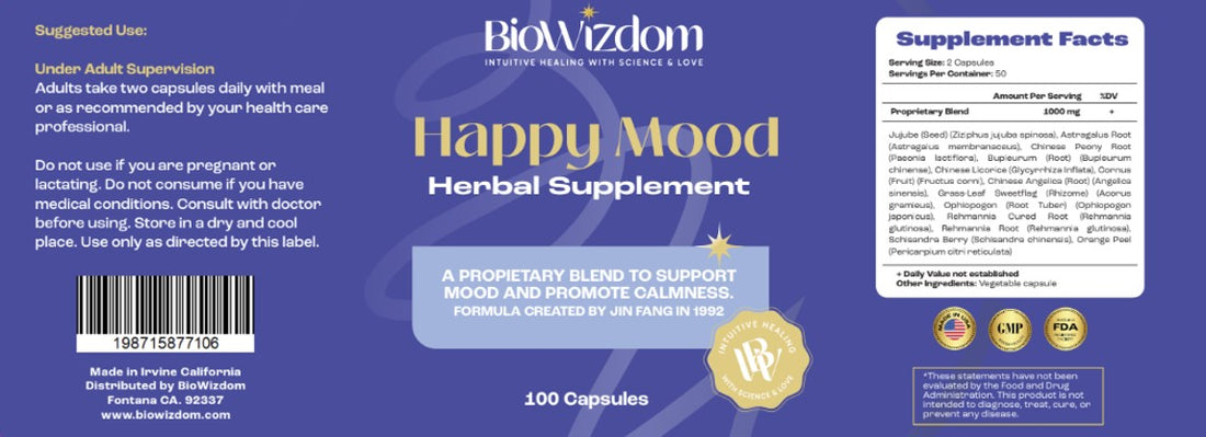 Basándose en siglos de práctivas curativas tradicionales chinas, el Dr. Jin Frang desarrolló una mezcla sinérgica de ingredientes que restaura la armonía de mente y cuerpo. Ya sea que esté lidiando con las presiones diarias, el estrés ocasional o simplemente necesite un impulso para mantener el equilibrio, Happy Mood le brinda el apoyo que necesita