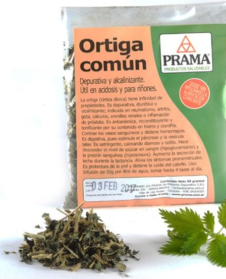 La ortiga (Urtica dioica) tiene infinidad de propiedades. Es depurativa, diurética y alcalinizante; indicada en reumatismo, artritis, gota, cálculos, arenillas renales e inflamación de próstata. Es antianémica, reconstituyente y tonificante por su contenido en hierro y clorofila. Contrae los vasos sanguíneos y detiene hemorragias. Es digestiva, pues estimula el páncreas y la vesícula biliar. Es astringente, calmando diarreas y colitis. Hace descender el nivel de azúcar en sangre (hipoglucemiante) y la presión sanguínea (hipotensora). Aumenta la secreción de leche durante la lactancia. Alivia los síntomas premenstruales. Es protectora de la piel y detiene la caída del cabello.
