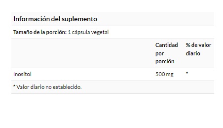 El inositol es un componente no esencial de la familia del complejo B proveniente de alimentos de origen tanto vegetal como animal. La forma de inositol que se utiliza en este producto es el mioinositol, la forma más abundante de este nutriente. El inositol se encuentra en todas las membranas celulares, con concentraciones más altas en el cerebro y el sistema nervioso central, donde desempeña un rol fundamental en la señalización de los neurotransmisores. El inositol también es fundamental para que la insulina actúe de manera adecuada, para el metabolismo de los lípidos y para mantener el equilibro de calcio celular.