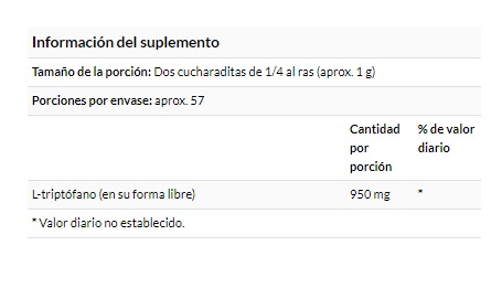 El L-triptófano es un aminoácido esencial; por lo tanto, el cuerpo no lo sintetiza y debe obtenerse de la alimentación. El L-triptófano es fundamental para la producción de serotonina y melatonina, las cuales ayudan a mantener un estado de ánimo positivo, patrones de sueño saludables y una función adecuada del sistema inmunitario. Cada lote de L-triptófano NOW® se prueba para verificar que no tenga el pico E ni contaminación microbiana.