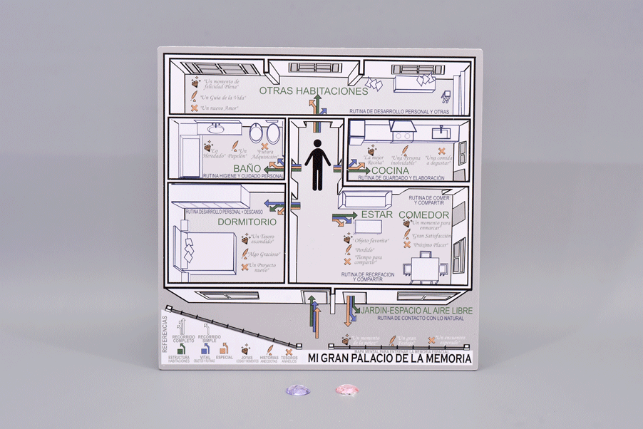 Mi Gran Palacio de la Memoria, es un mapa mental que nos guía para que podamos entrenar la memoria espacial en nuestra casa actual o en cualquier hogar que hayamos vivido o estado en el pasado.