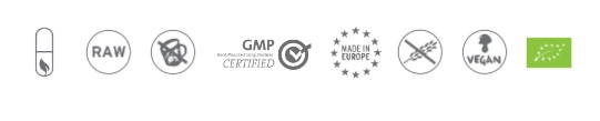 *Estándares de calidad y seguridad farmacéutica GMP (más estrictos que ISO 9001). Certificación CRAEGA (producción ecológica certificada a nivel europeo). Producto seguro que cumple con requisitos de la Agencia Española de Seguridad Alimentaria (AESAN) y Agencia Europea de Seguridad Alimentaria (EFSA)