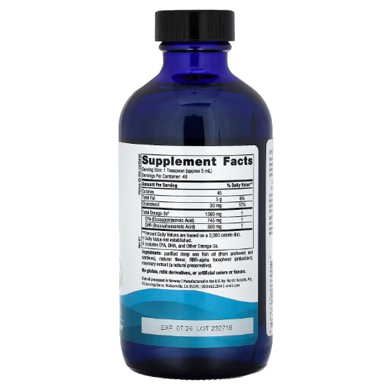 Omega-3 de Nordic Naturals ofrece 1560 mg de omega-3 por porción, superando con creces la dosis recomendada por expertos de 500 mg por día. La ingesta adecuada de omega-3 es esencial para promover una buena nutrición y el bienestar general, incluida la función saludable del corazón y el cerebro, así como del estado de ánimo, la cognición y la inmunidad.
