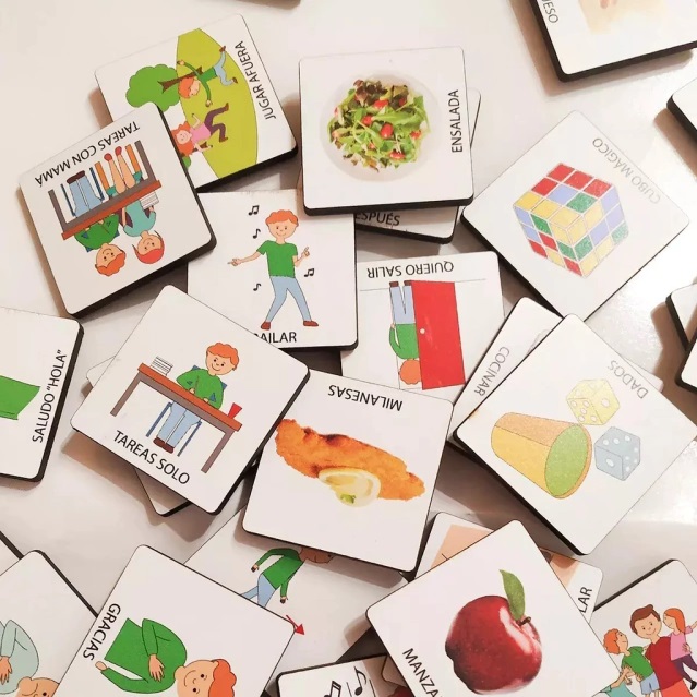 JUEGOS: cocinar, play móvil, dados, escondidas, tocar instrumento, cubo mágico, jugar al celular, leer un cuento, jugar con mamá y papá, jugar afuera, juego de mesa, hablar por teléfono, disfrazarse, cantar, bailar, tareas con mamá, tareas solo, caminar, andar en bici, quiero salir.