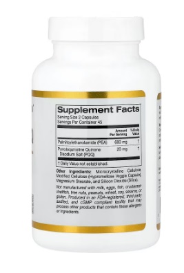 El suplemento PEA con PQQ de California Gold Nutrition® es un suplemento diario que contiene palmitoiletanolamida y pirroloquinolina quinona, que pueden ayudar a reforzar la función mitocondrial y el bienestar de las articulaciones.