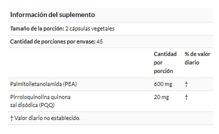 Palmitoiletanolamida (PEA), Sal disódica pirroloquinolina quinona (PQQ).