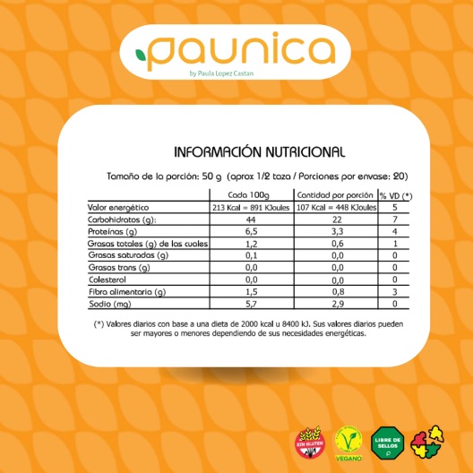 Ingredientes: fecula de mandioca, harina de sorgo, harina de trigo sarraceno