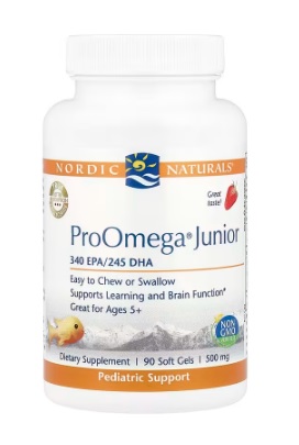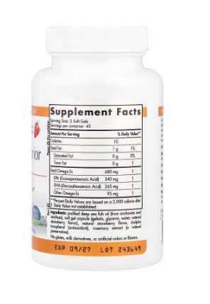 Aceite de pescado de aguas profundas purificado (de anchoas y sardinas), cápsula de gel suave (gelatina, glicerina, agua, sabor a fresa natural), sabor a fresa natural, d-alfa tocoferol, extracto de romero (un conservante natural).