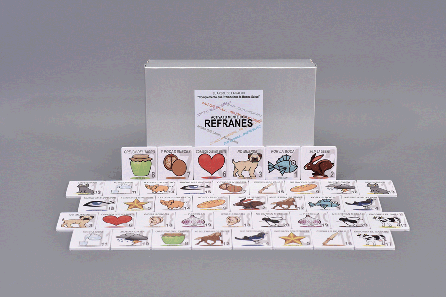 Inspirado en los juegos de memoria y aprendizaje para niños, diseñado con una temática pensada especificamente para quienes disfrutan de recordar y compartir REFRANES a lo largo de su día. En concordancia a todos los fundamentos de la neurociencia sobre plasticidad neuronal, es una herramienta orientada a rentrenar y mejorar el rendimiento mental para mantener la mente activa en la adultez.