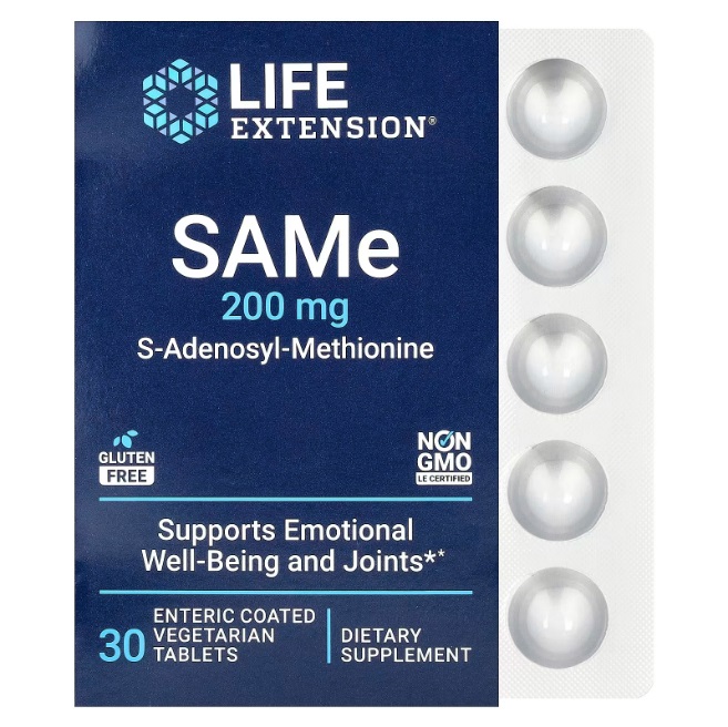 La SAMe potencia la metilación de las células cerebrales y facilita las acciones enzimáticas del ADN juvenil. Estas acciones enzimáticas son necesarias para la conversión saludable de neurotransmisores como la norepinefrina, la dopamina y la serotonina, y pueden explicar las propiedades de la SAMe para favorecer el estado de ánimo. La SAMe también ayuda a mantener los niveles de acetilcolina necesarios para la función cognitiva.