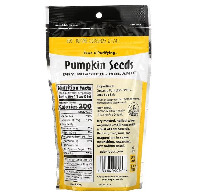 Semillas de calabaza orgánicas, Edén Sal marina portuguesa.