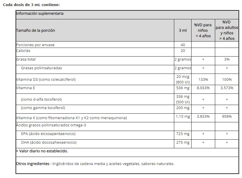 La fórmula de speak® incluye siete nutrientes en porciones y proporciones precisas para niños con necesidades nutricionales especiales. Cada porción de speak® contiene omega-3 concentrado y ultrapurificado (725 mg de EPA, 275 mg de DHA), además de ricas cantidades de dos formas de vitamina E. El omega-3 favorece la función cognitiva y se combina con el antioxidante vitamina E. Las cantidades óptimas de d-alfa y gamma tocoferoles funcionan como antioxidantes clave y actúan junto con las grasas omega-3 para favorecer la salud neurológica y proporcionar una nutrición esencial. Debido a los efectos teóricos anticoagulantes del omega-3 y la vitamina E, también se incluye vitamina K (un nutriente que contribuye a la coagulación sanguínea normal y saludable). Esta precisa combinación de ingredientes purificados se presenta en un aceite puro, que se puede verter directamente del frasco, lo que facilita su uso tanto para padres como para niños. Speak +d contiene 800 UI de vitamina D3 por porción. Los expertos coinciden en que la vitamina D3 es especialmente importante y beneficiosa en ciertas poblaciones. La vitamina D3 contenida en las fórmulas de Speak no contiene maíz, ni soja, ni OGM y es orgánica.