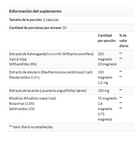 - Complejo de ashwagandha, eleuterola y rodiola & Lavanda calmante