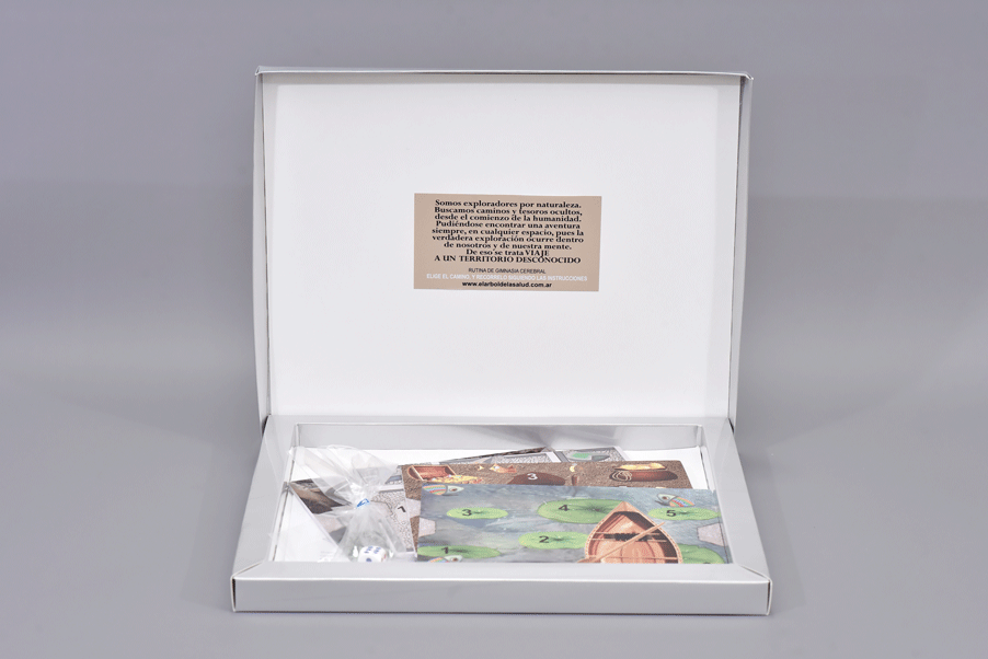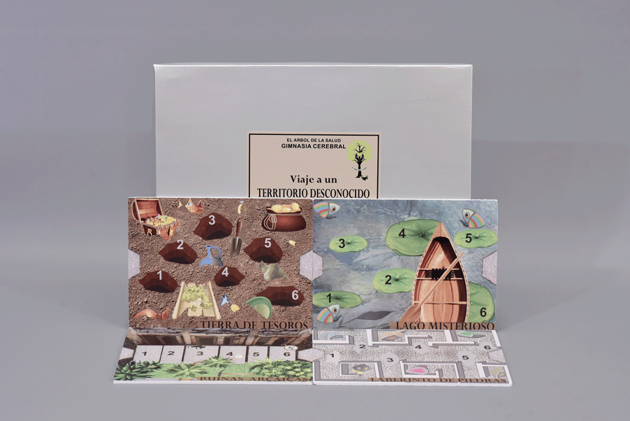 Contiene 4 tablas que representan 4 posibles territorios a explorar: «Tierra de Tesoros», «Laberinto de Piedras», «Ruinas Arcaicas» y «Lago Misterioso». Mediante la ayuda de 1 dado y fichas volumétricas se puede recorrer cada «territorio» realizando la ejercitación asociada al número del dado.