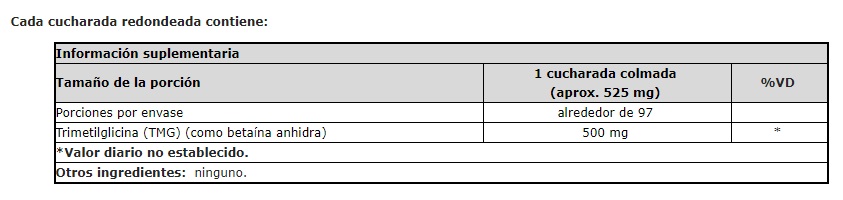 La trimetilglicina (TMG) también se denomina glicina betaína, pero el nombre trimetilglicina significa que tiene tres grupos metilo unidos a cada molécula de glicina. Por lo tanto, la TMG es un donante de metilo más activo y favorece la metilación de la homocisteína para formar metionina. Un nivel adecuado de metionina es fundamental para la sulfatación y la producción de glutatión, componentes esenciales para ayudar al organismo a protegerse de las sustancias químicas tóxicas y el estrés oxidativo.