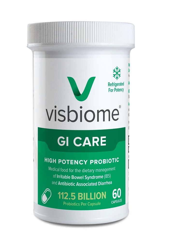 Visbiome® es un alimento médico probiótico especialmente formulado para el manejo dietético de la disbiosis asociada con el síndrome del intestino irritable (SII), la colitis ulcerosa, la reservoritis, la diarrea asociada a antibióticos y la encefalopatía hepática. Visbiome es una terapia no farmacológica que aborda necesidades nutricionales específicas para promover el equilibrio microbiano en personas que no pueden ser cubiertas únicamente con la dieta.