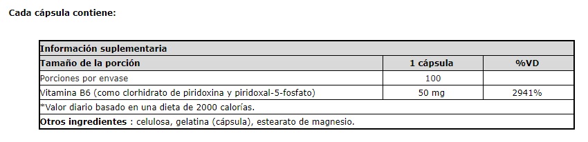 La vitamina B6 de Nature’s Way se convierte en la principal enzima responsable del metabolismo de aminoácidos y proteínas. El sistema nervioso central también depende de la vitamina B6 para la producción de serotonina, un neurotransmisor esencial. Cada cápsula aporta 50 mg de vitamina B6. Sin ingredientes artificiales ni conservantes.