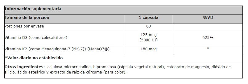 Advertencia: Todas las formas de vitamina K pueden interactuar con medicamentos anticoagulantes. Si toma alguno de estos medicamentos, consulte a su médico antes de tomar este producto.