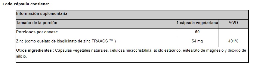 - Zinc de alta concentración para reforzar la función inmunitaria